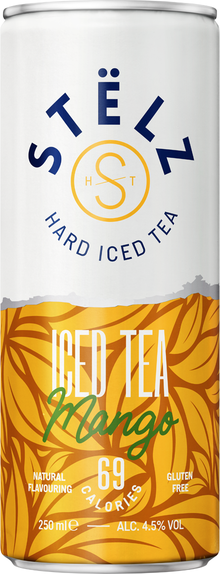 STËLZ Hard Iced Tea Lemon is groene thee met een hint van mango. Zonder koolzuur. Bevat 4,5% alcohol, 69 kcal, geen suiker, geen koolhydraten, geen gluten en is vegan.